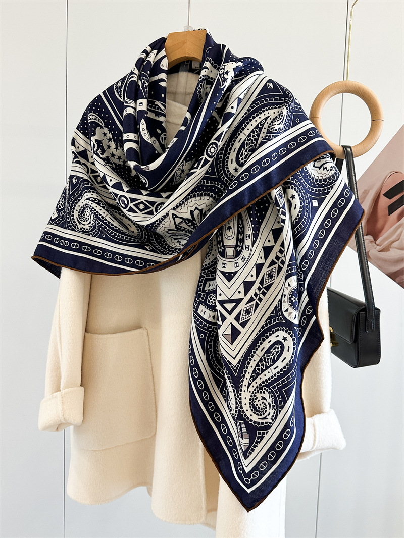 This Brand Design Fashion Silk Wool Muffler for Women is our popular design. Sold very well. It is double side print with luxury design. Fashion Women like it very much.
