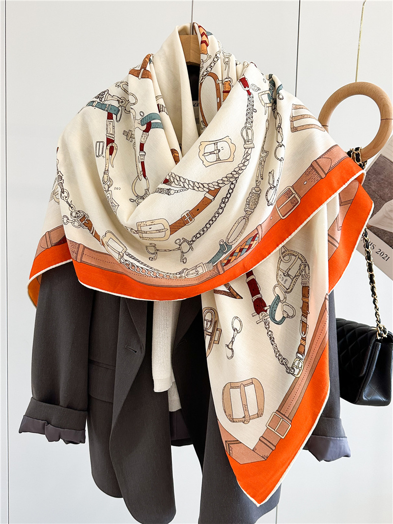 Brand Double Side Print Big Square Wool Shawl in 140*140cm