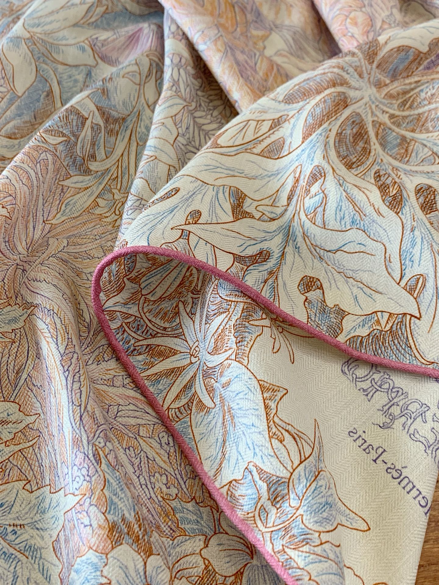 This Brand Double Side Print Silk Cashmere Shawl is our popular design. Sold very well. It is double side print with luxury design. Fashion Women like it very much.
