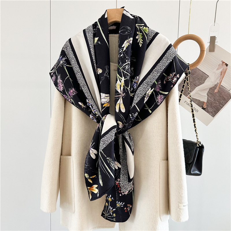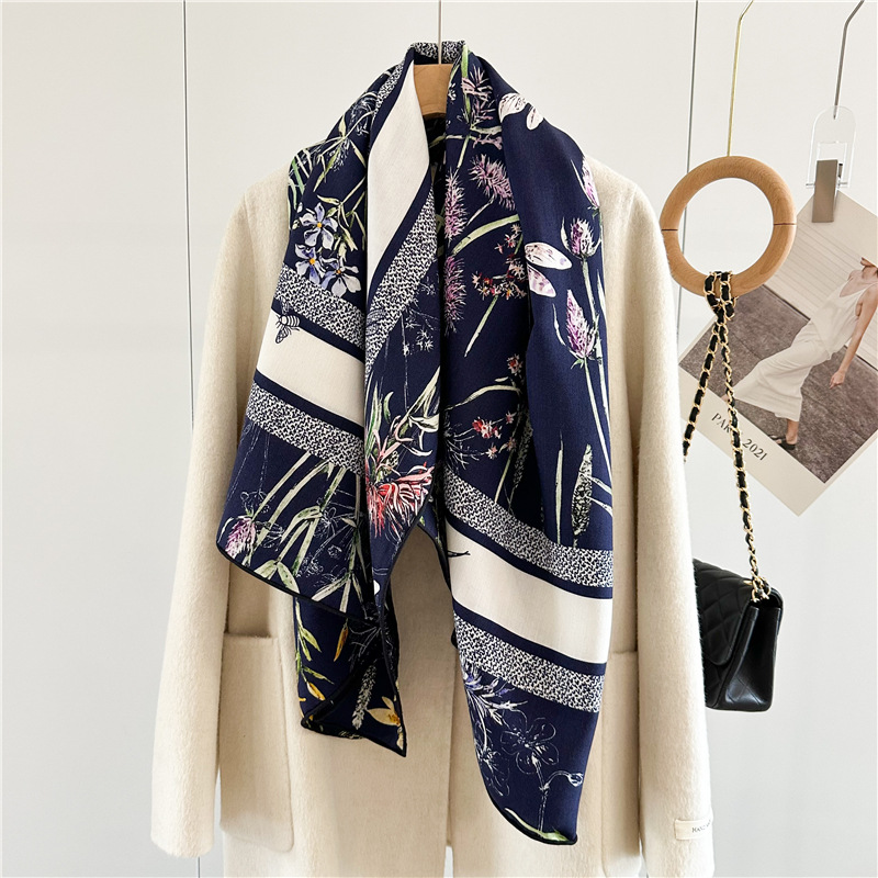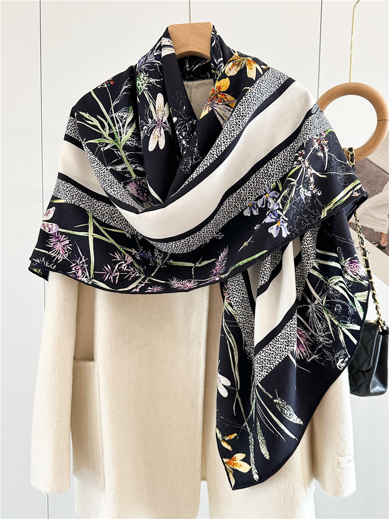 This Print Silk Wool Lady Shawl for Winter is our popular design. Sold very well. It is double side print with luxury design. Fashion Women like it very much.
