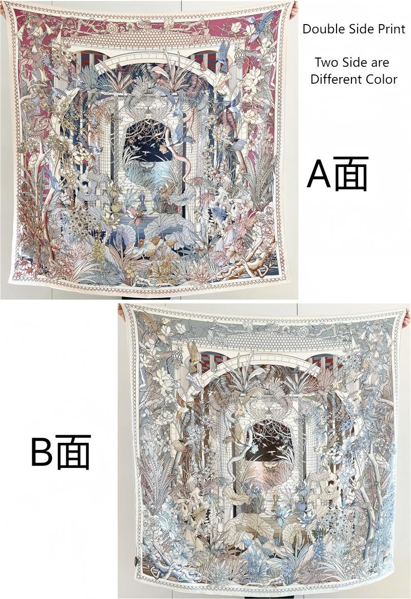 In order to reduce the price, choose to print brand design in silk wool instead of silk cashmere. Price is very good, but without Logo. If need logo one, pls see catalog ,choose silk cashmere one.