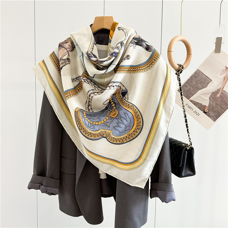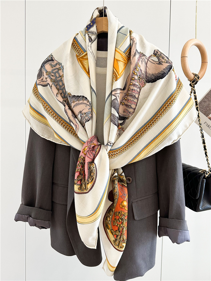 This Classic Design Luxury Shawl in Silk Wool for Autumn and Winter is our popular design. Sold very well. It is double side print with luxury design. Fashion Women like it very much.
