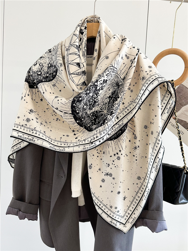 D Brand Design Horoscope Travel Luxury Silk Wool Shawl