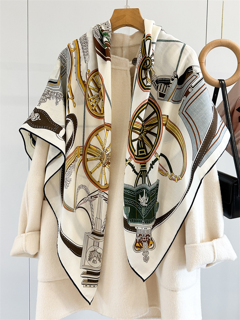 This Design Luxury Print Bandana Shawl in Wool is our popular design. Sold very well. It is double side print with luxury design. Fashion Women like it very much.