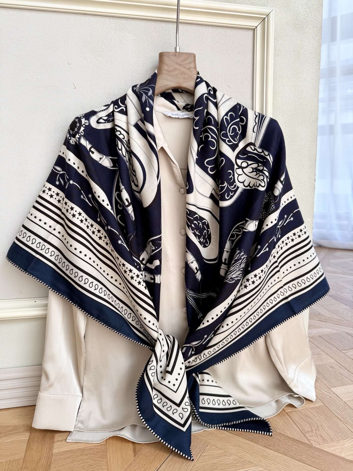 This Double Side Print Big Silk Cashmere Shawl is our popular design. Sold very well. It is double side print with luxury design. Fashion Women like it very much.