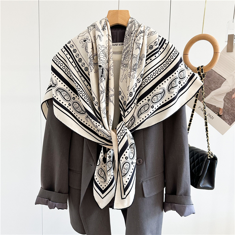 This Double Side Print Big Wool Lady Square Bandana is our popular design. Sold very well. It is double side print with luxury design. Fashion Women like it very much.