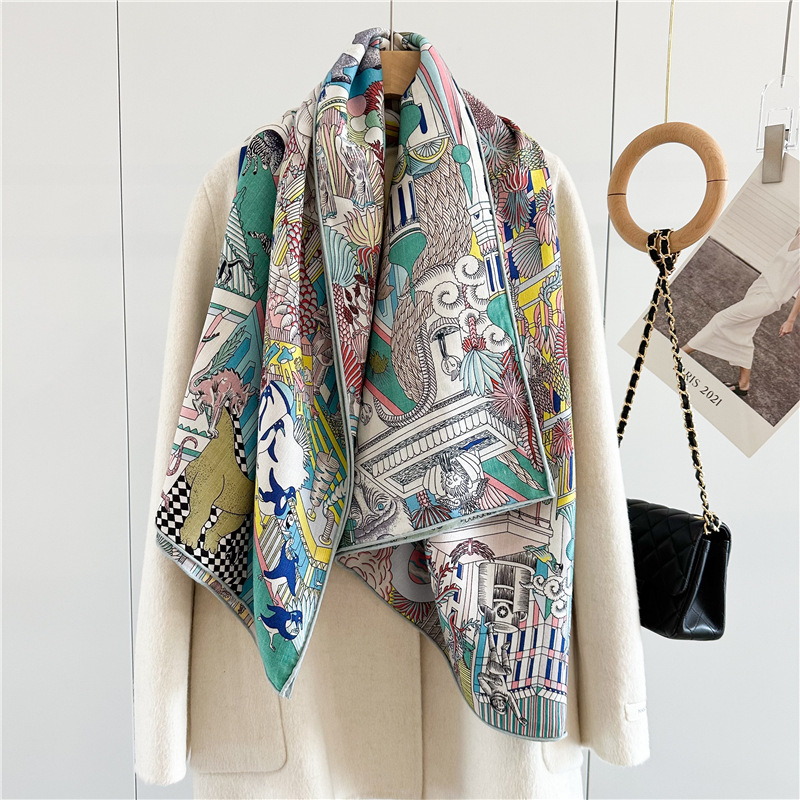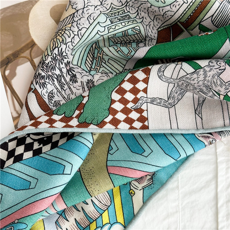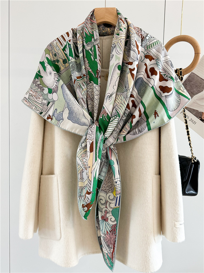 This Factory Direct Print Silk Wool Women Muffler Shawl is our popular design. Sold very well. It is double side print with luxury design. Fashion Women like it very much.