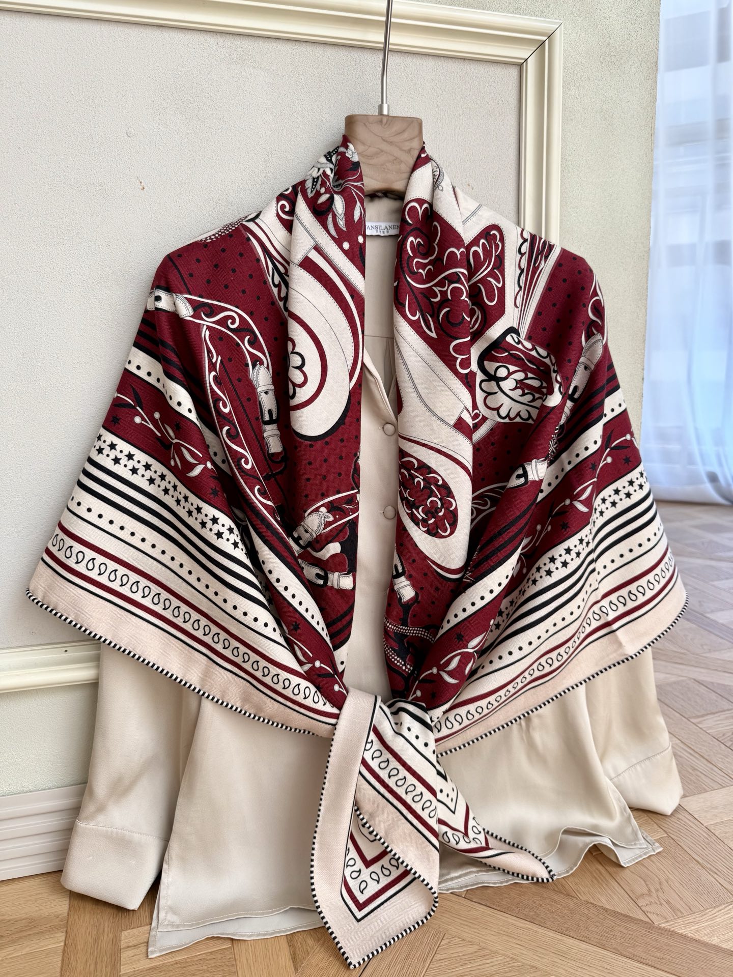 Fashion Square Print Silk Cashmere Shawl Bandana