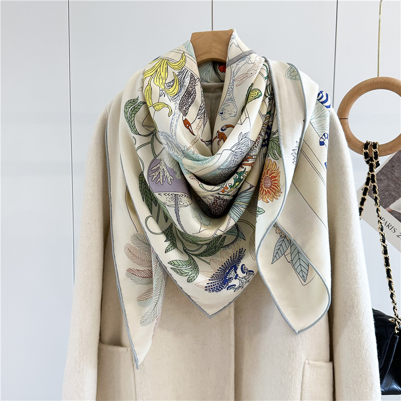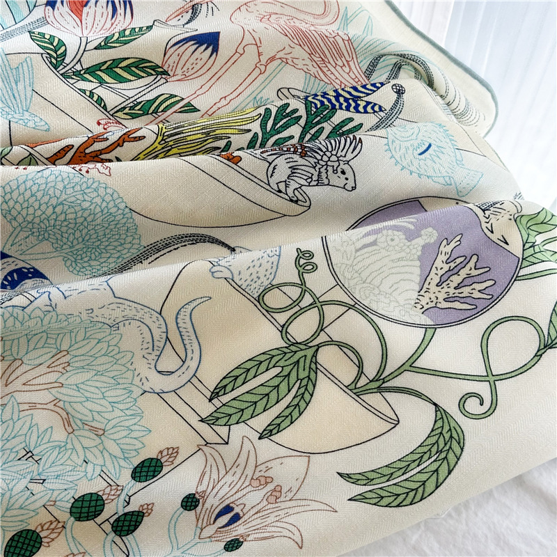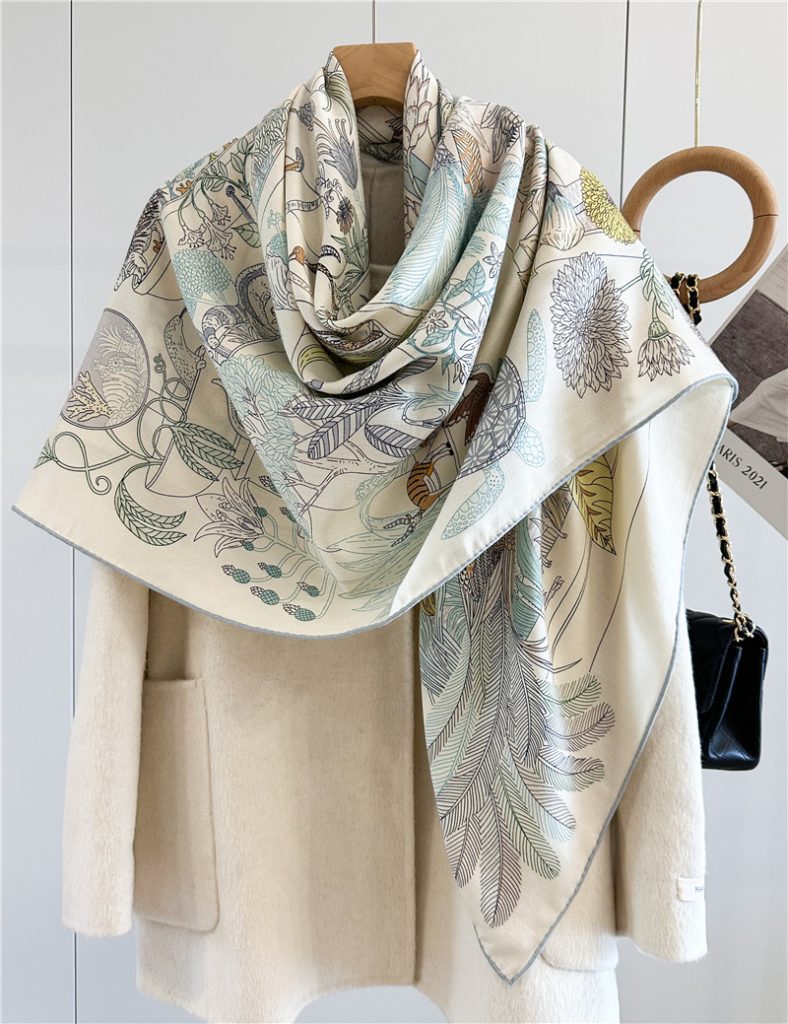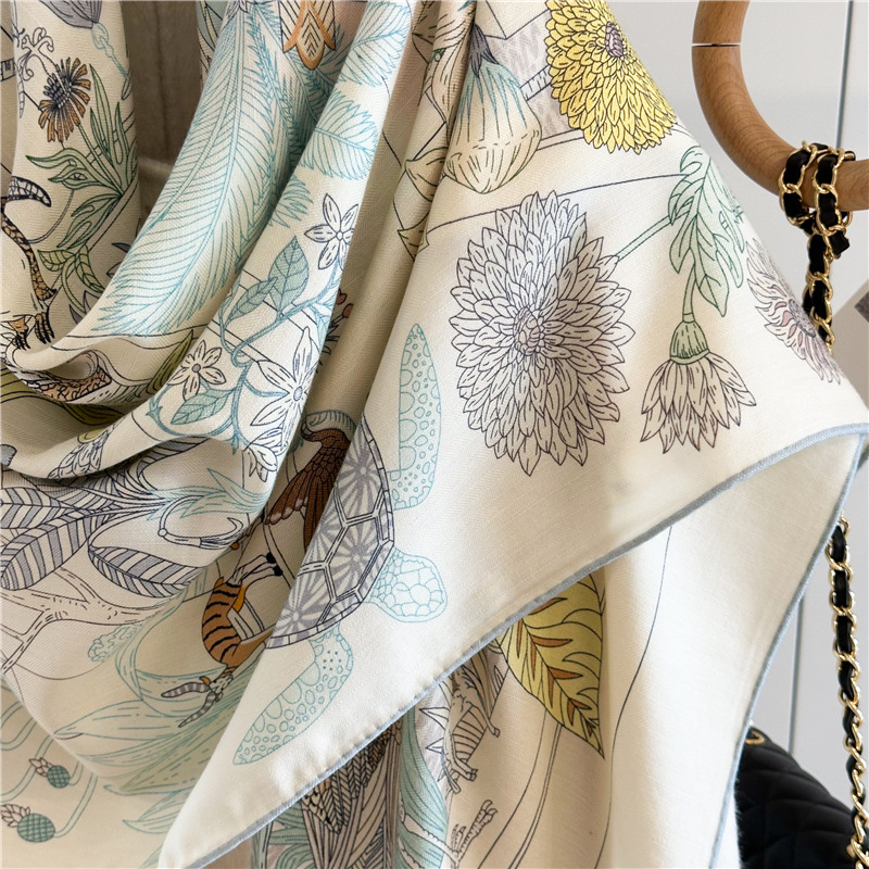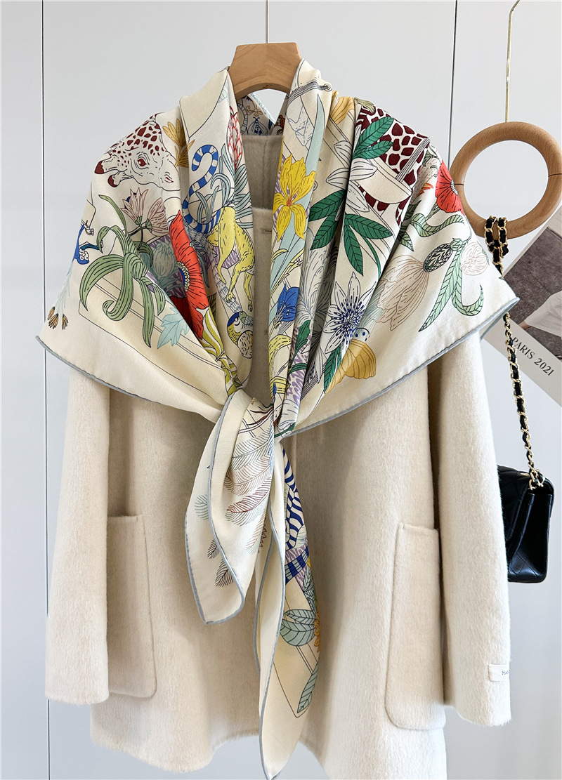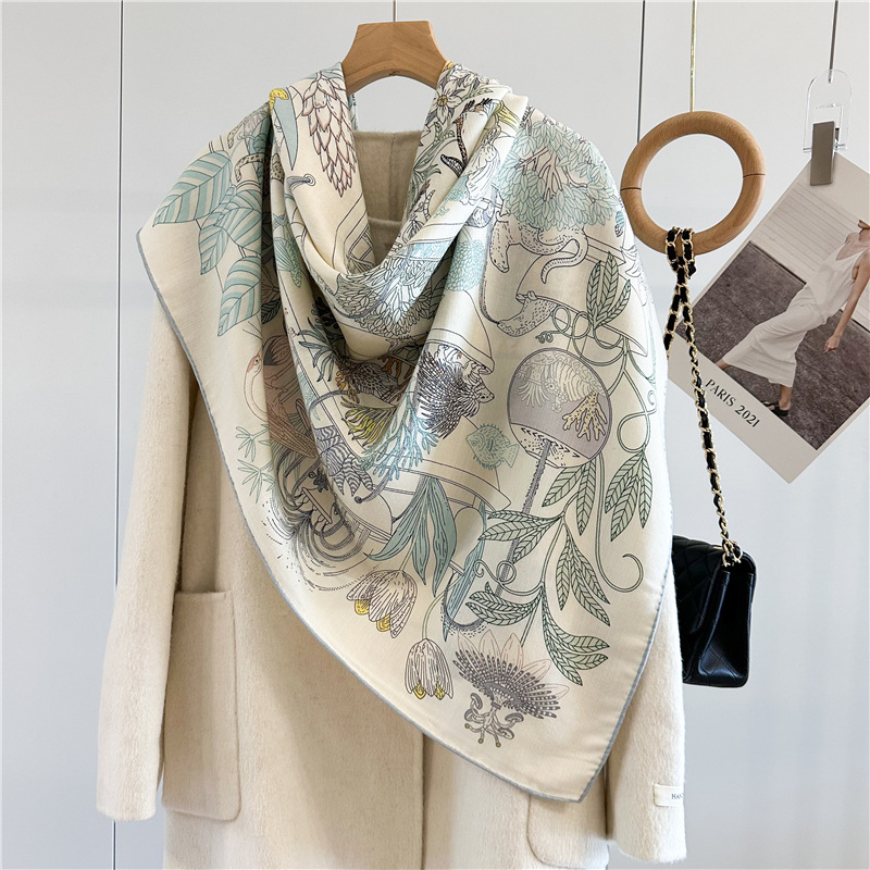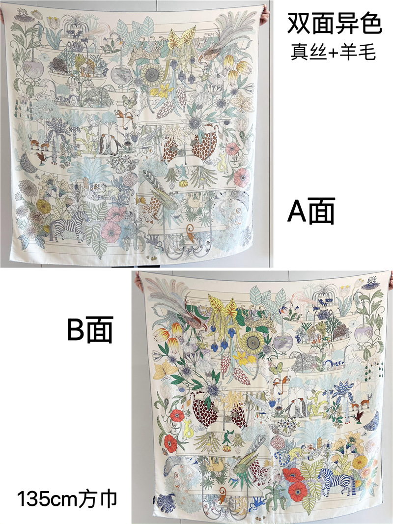 This H Brand Silk Wool Big Square Shawl for Gift is our popular design. Sold very well. It is double side print with luxury design. Fashion Women like it very much.