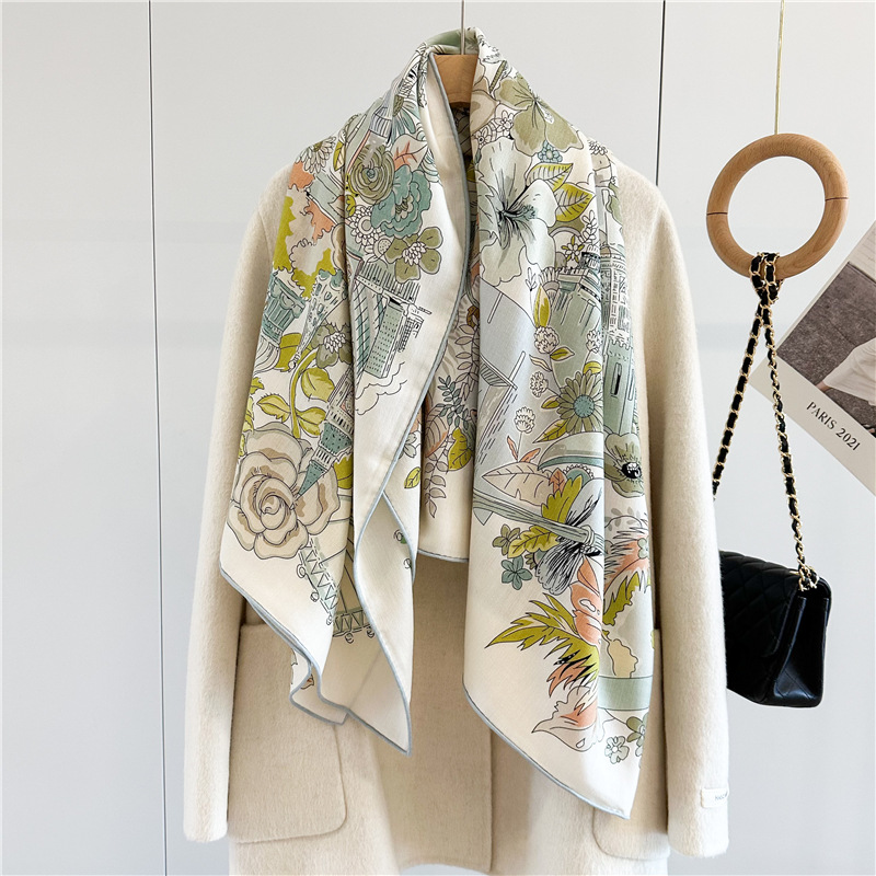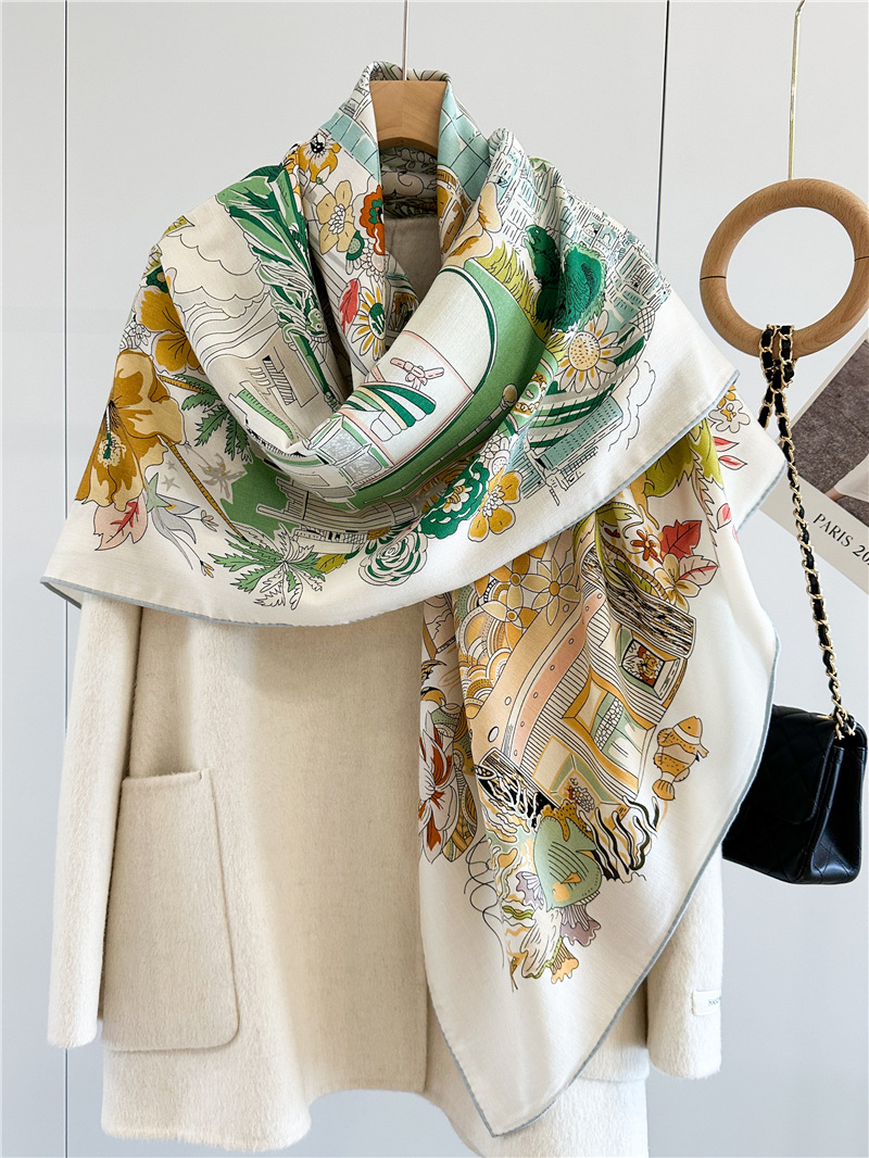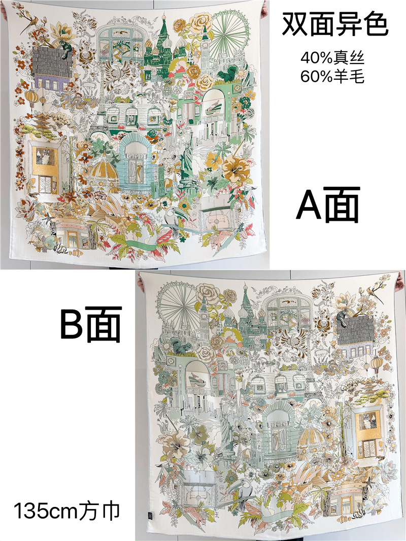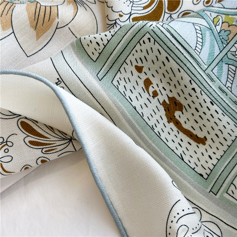 This Herm** Design Silk Wool Shawl Bandana for Fashion Women is our popular design. Sold very well. It is double side print with luxury design. Fashion Women like it very much.