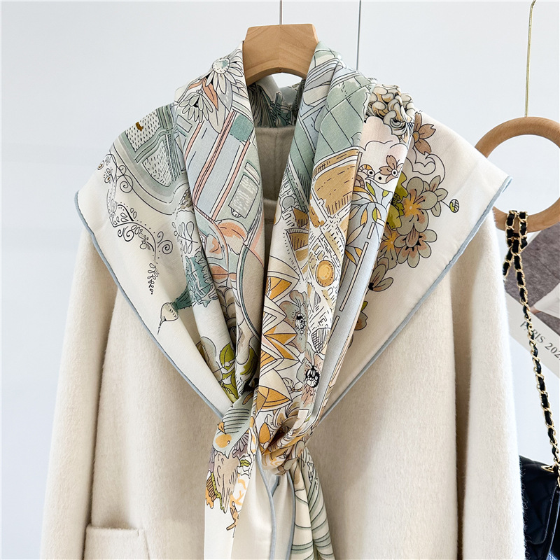 Herm** Design Silk Wool Shawl Bandana for Fashion Women