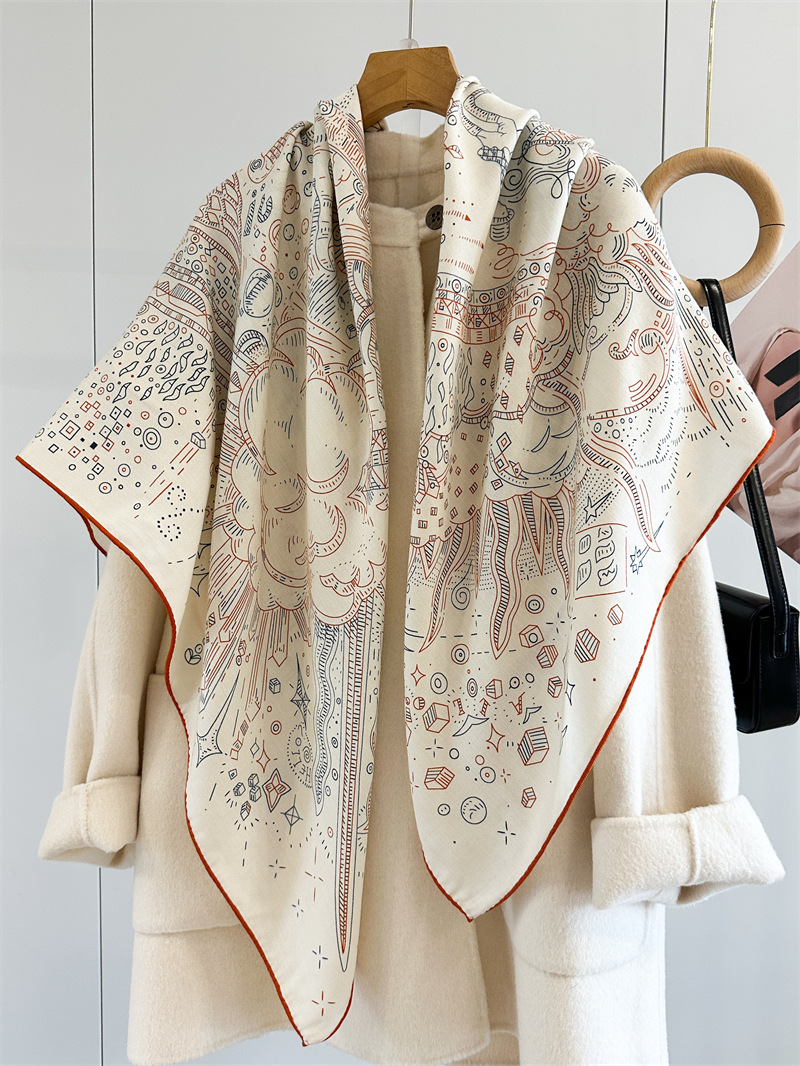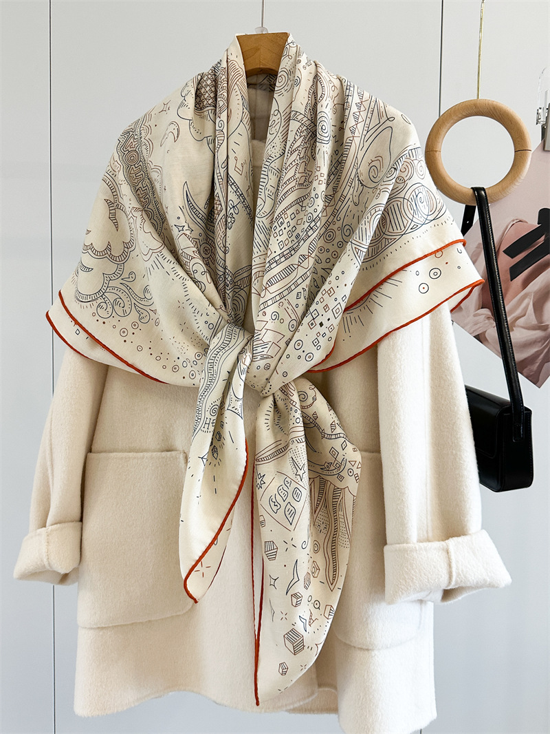 This Hight End Big Square Silk Wool Luxury Shawl is our popular design. Sold very well. It is double side print with luxury design. Fashion Women like it very much.