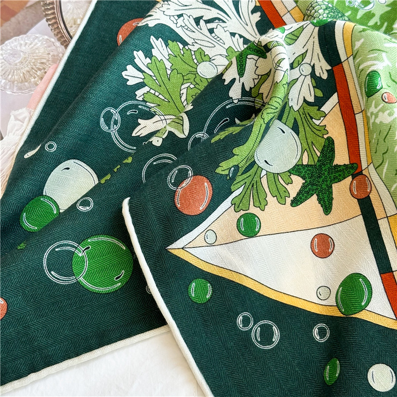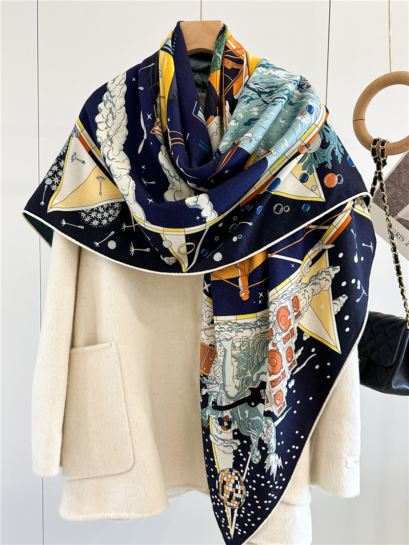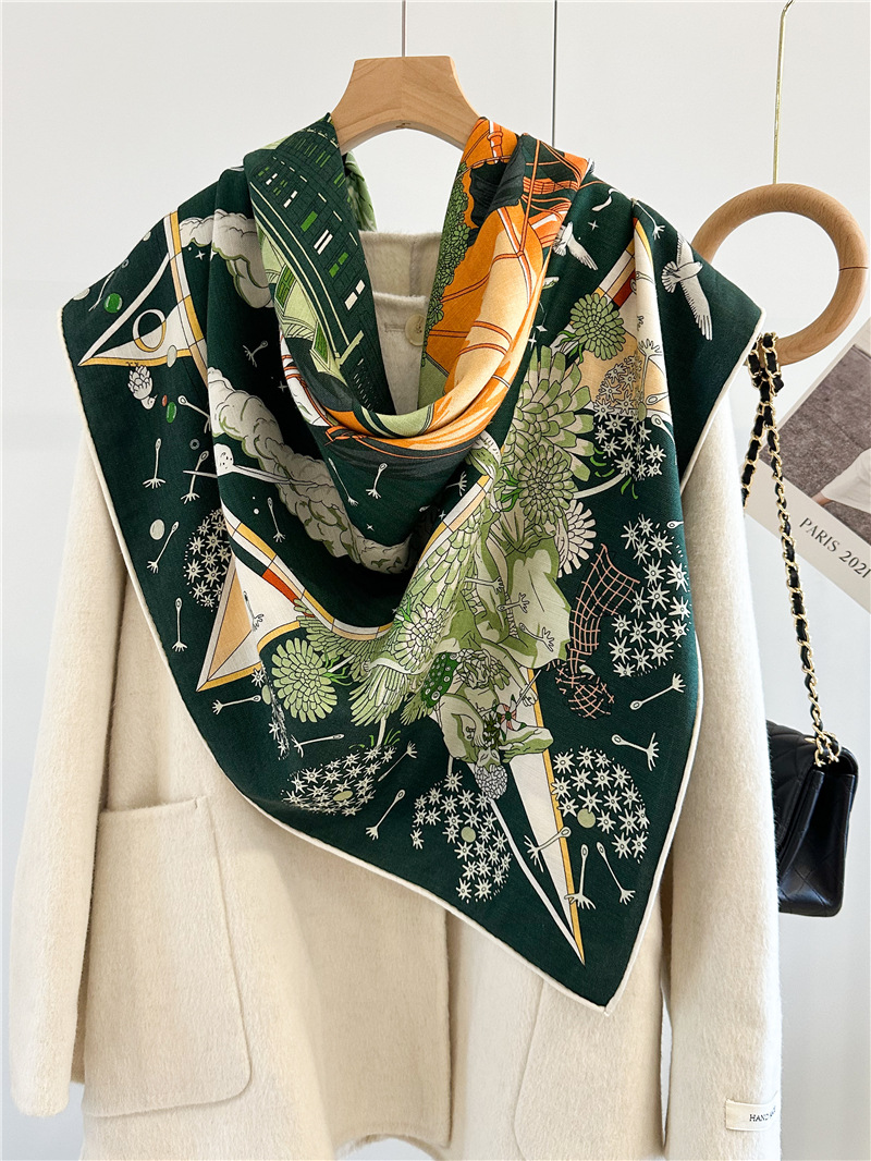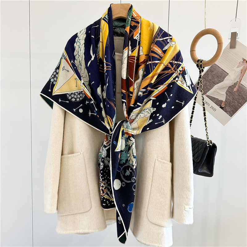 This for Hot Sale Design Big Square Silk Wool Shawl is our popular design. Sold very well. It is double side print with luxury design. Fashion Women like it very much.