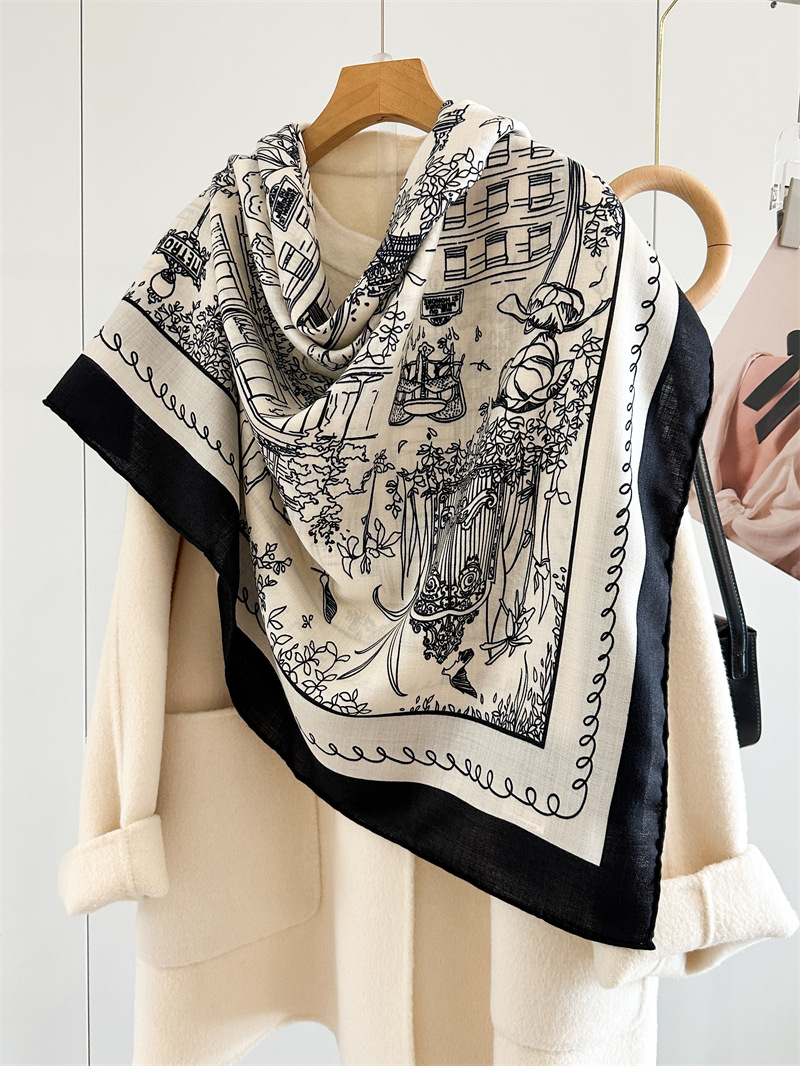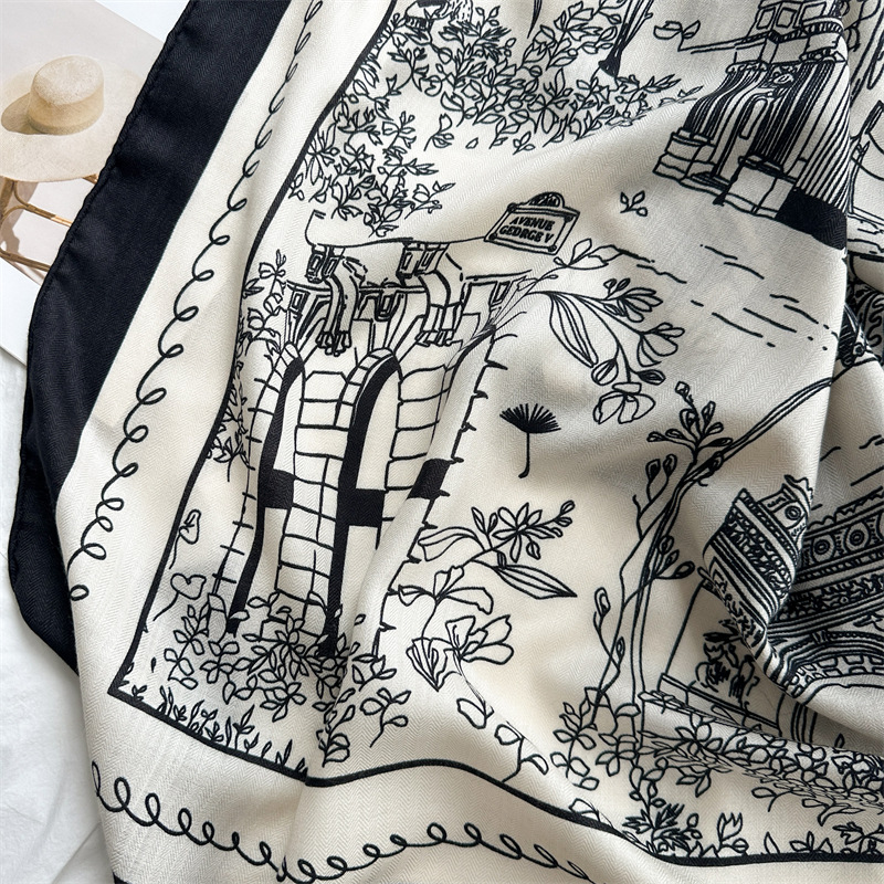 This Lady Silk Wool Big Square Bandana Shawl is our popular design. Sold very well. It is double side print with luxury design. Fashion Women like it very much.