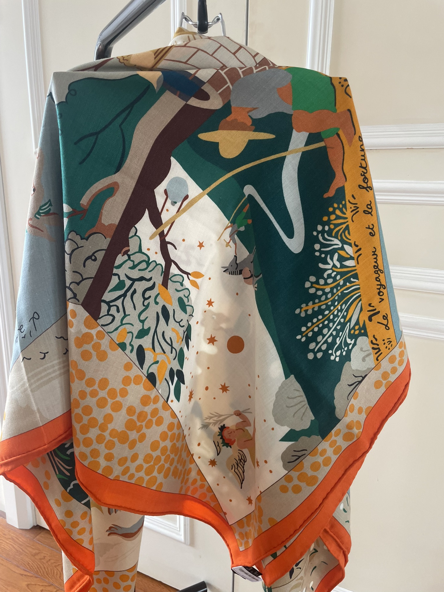 Silk Cashmere Shawl, 30% silk, 70% Cashmerer (The same as the brand fabric), major in 135*135cm. If any interesting, can leave messag, will send our catalog for review.