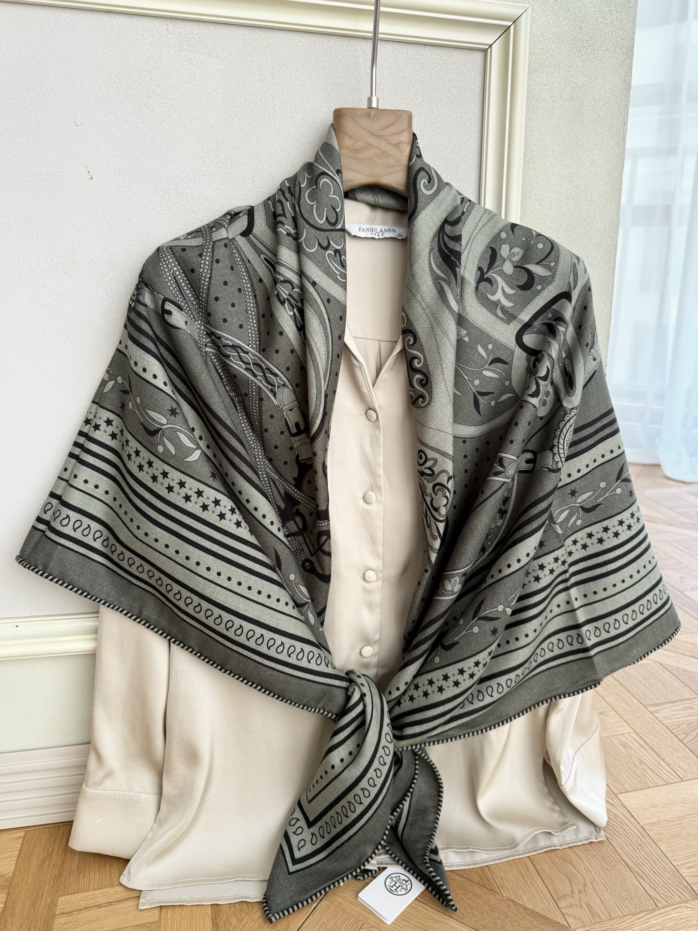 This All-Match Luxury Silk Cashmere Lady Shawl is our popular design. Sold very well. It is double side print with luxury design. Fashion Women like it very much.