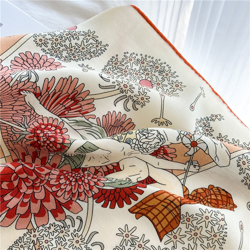SV Silk Scarves Co.,Ltd is the factory who starts to printing scarves since 2006 years. We have the print machines both can do double side print and single side print. And also have the artist to design. We have hundreds of designs, then print and stock them. our ink used is imported, it is eco-friendly and color is bright and nice . Our fabric is mulbery silk, choose 5A grand fabric. Our hand roll hem is made by skillful workers, the same as Hermes. We sold them in high quality with best price. Really hope each client to open the silk scarves can say “wow”.