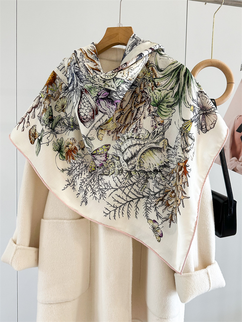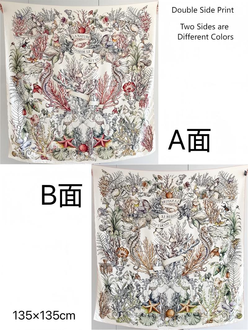 This Sea World Design Brand Luxury Silk Wool Shawl is our popular design. Sold very well. It is double side print with luxury design.  Fashion Women like it very much.