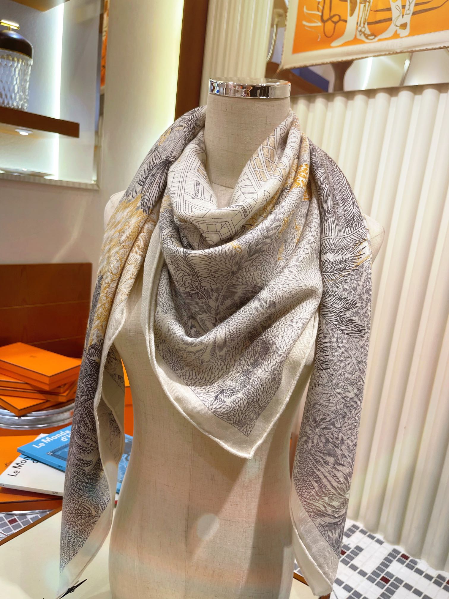 Silk Cashmere Shawl, 30% silk, 70% Cashmerer (The same as the brand fabric), major in 135*135cm. If any interesting, can leave messag, will send our catalog for review.
