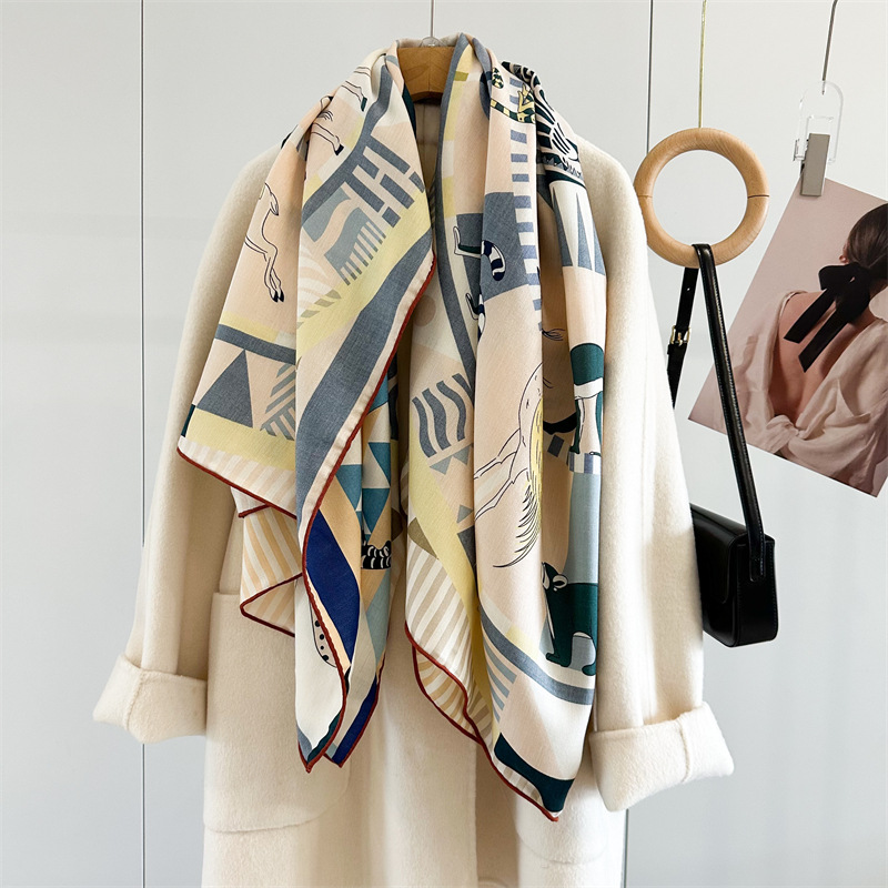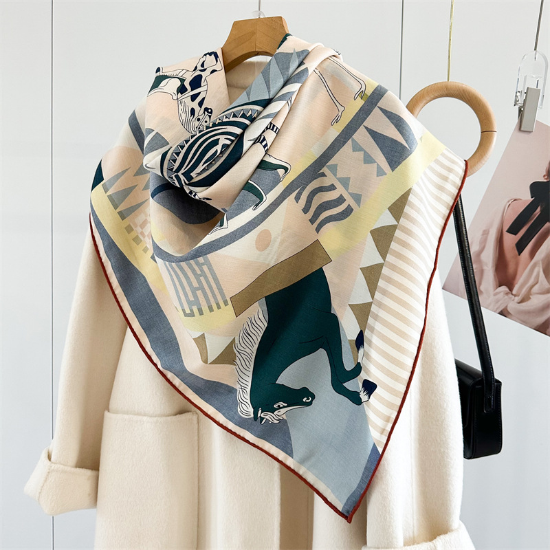 This Women Brand Fashion Silk Wool Shawl is our popular design. Sold very well. It is double side print with luxury design. Fashion Women like it very much.