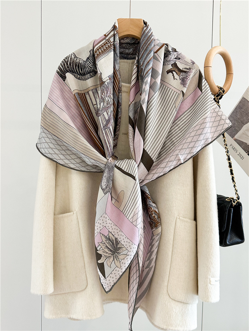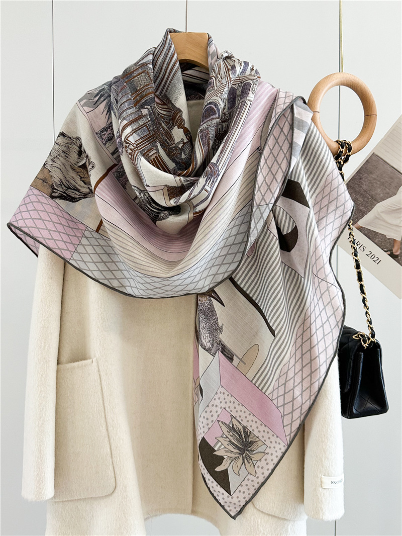 This Women Luxury Opera Design Square Wool Shawl is our popular design. Sold very well. It is double side print with luxury design. Fashion Women like it very much.