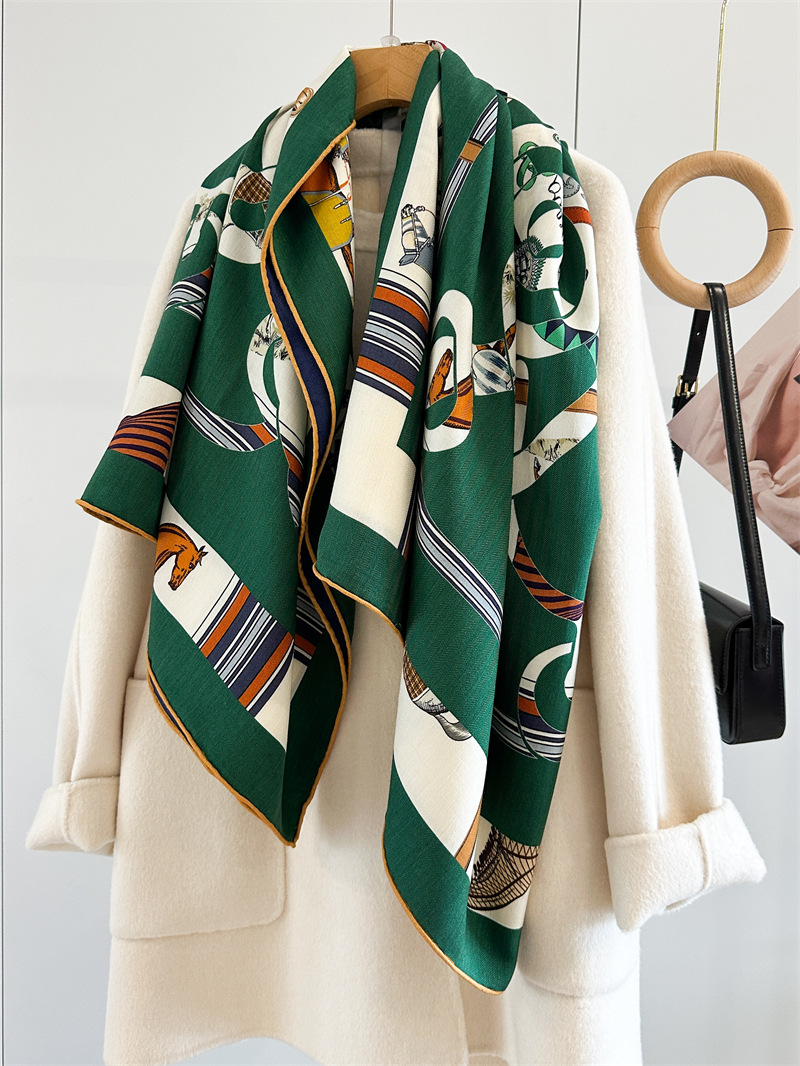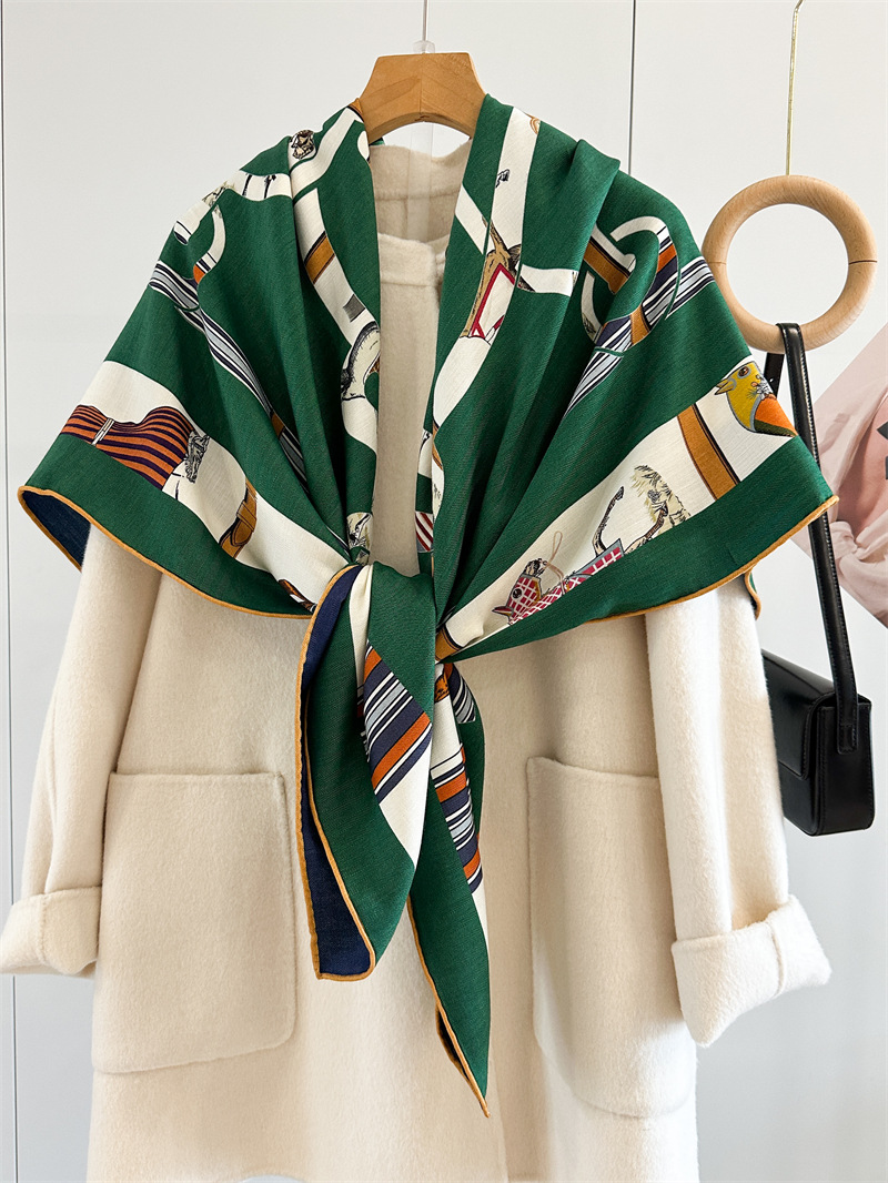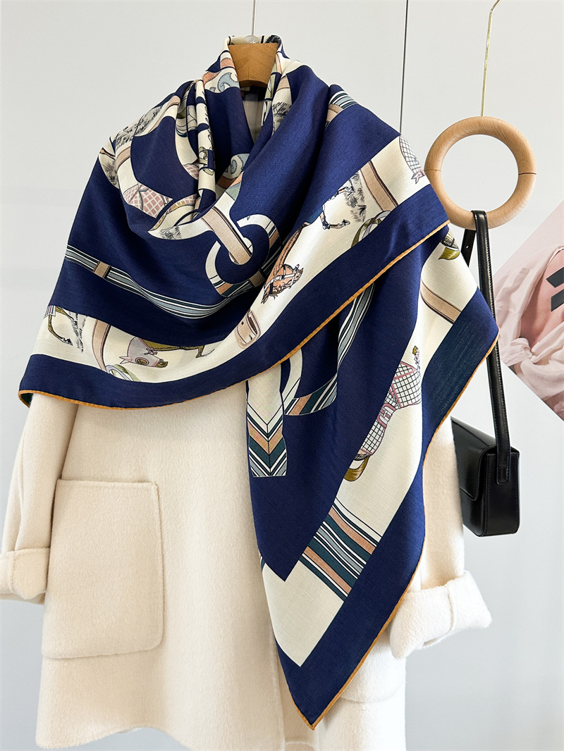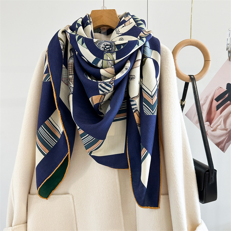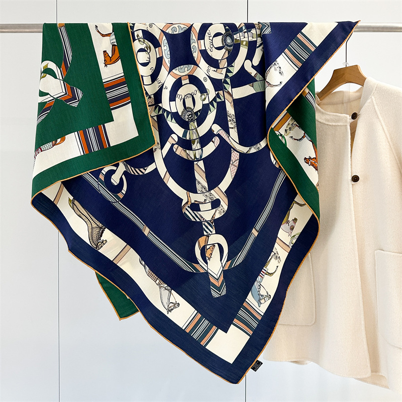 This Women Silk Wool Big Square Scarves in Wool is our popular design. Sold very well. It is double side print with luxury design. Fashion Women like it very much.