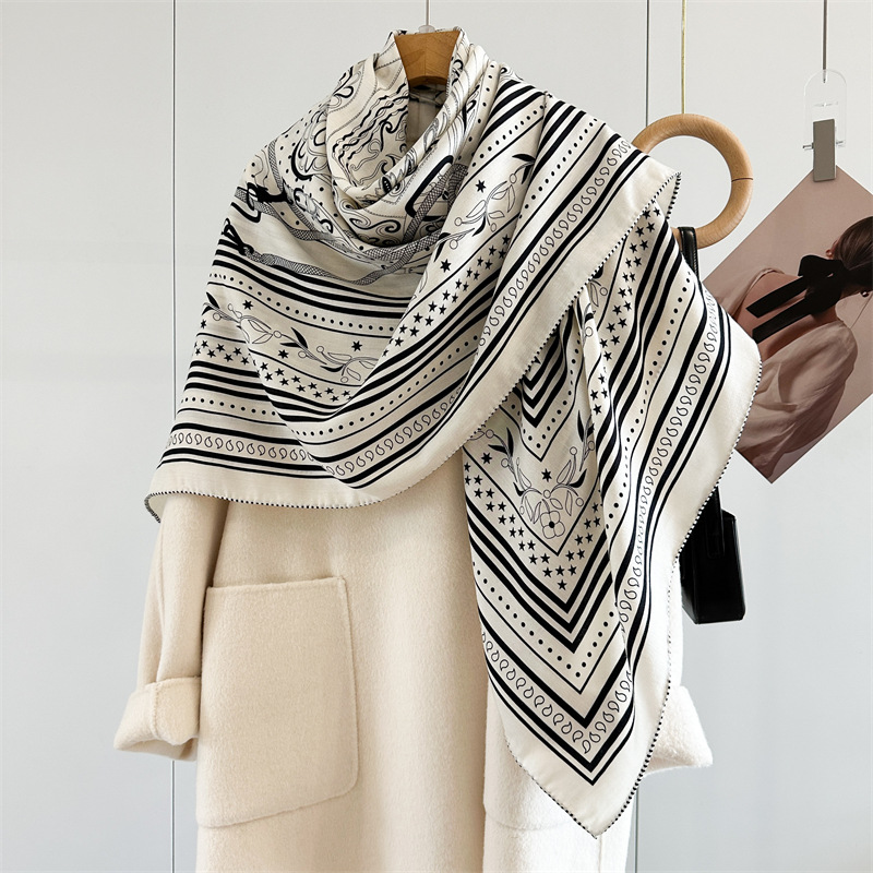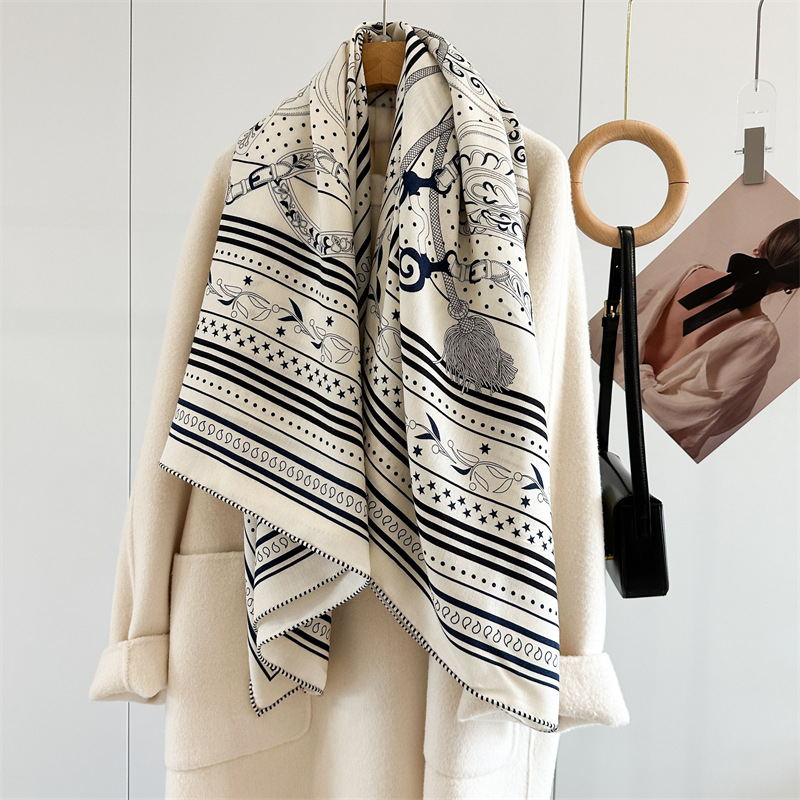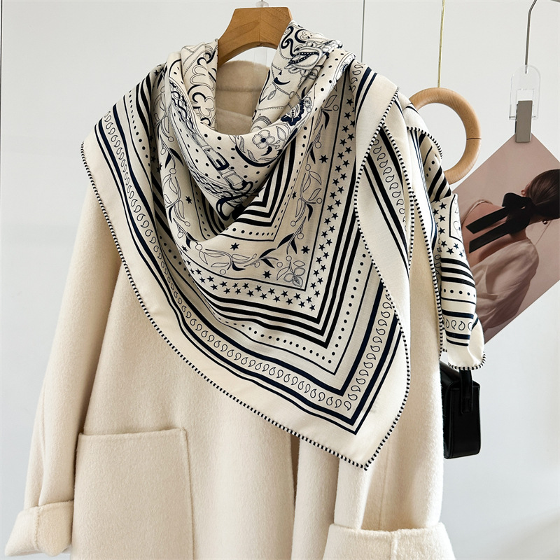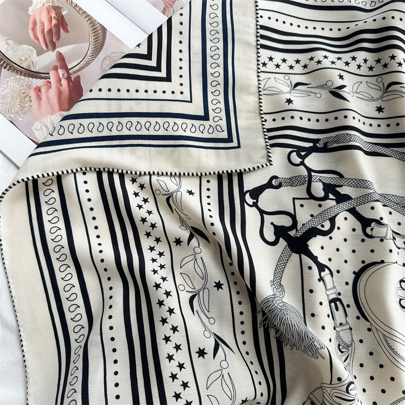 This Women White Brand Design Wool Big Bandana is our popular design. Sold very well. It is double side print with luxury design. Fashion Women like it very much.
